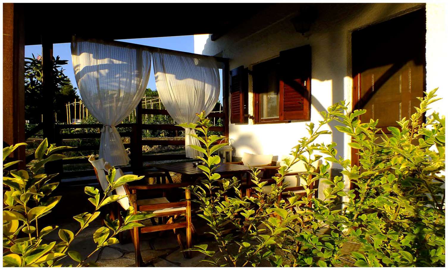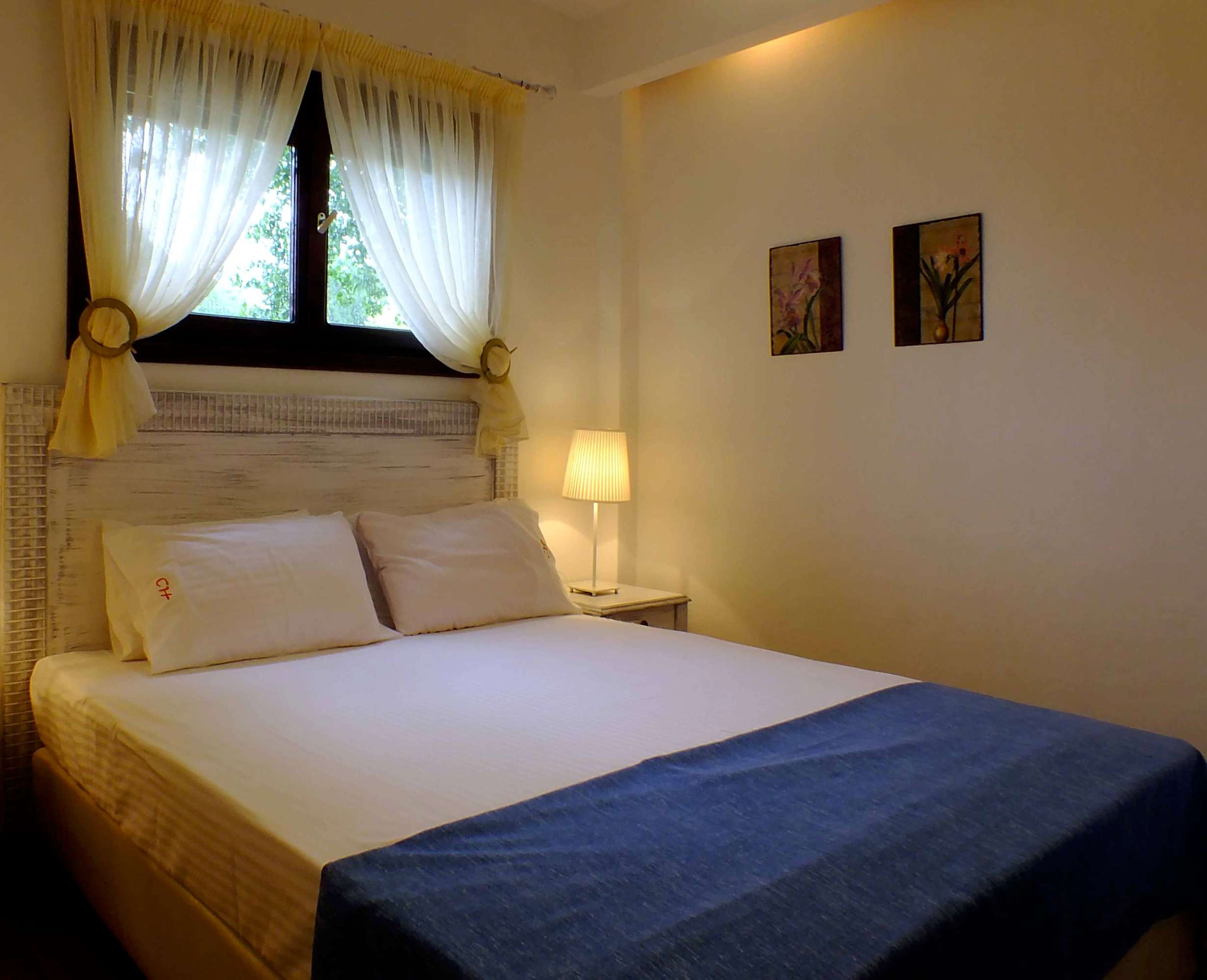 Small modern economic apartment which features one double bedroom, and a fully fitted kitchen. Includes private bathroom with shower. The kitchen has a single bed which can be used as a comfortable sofa during the day.The apartment has stone-tiled veranda with direct access to the beautiful large garden, just steps from the sea. Ideal for families with young children or baby. A baby cot free of charge is available on request.